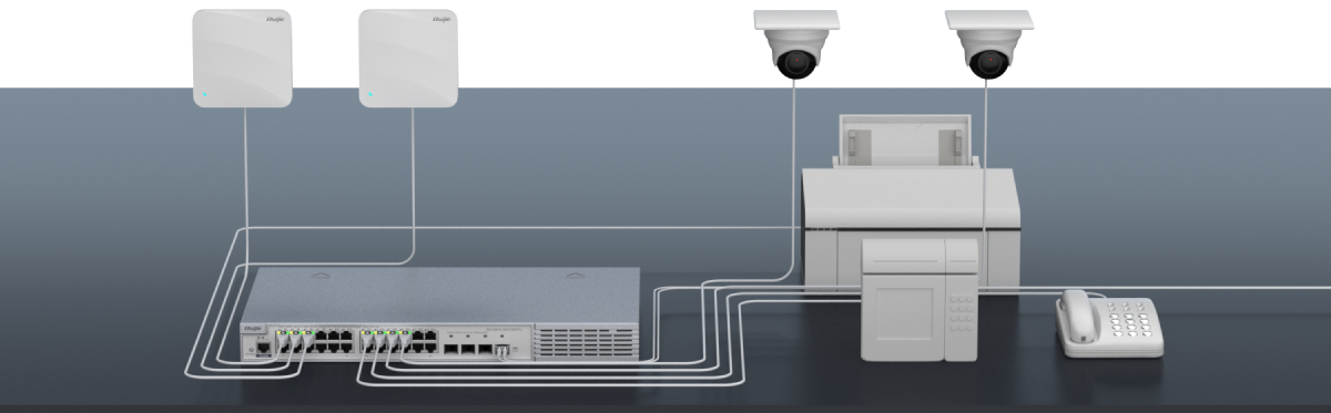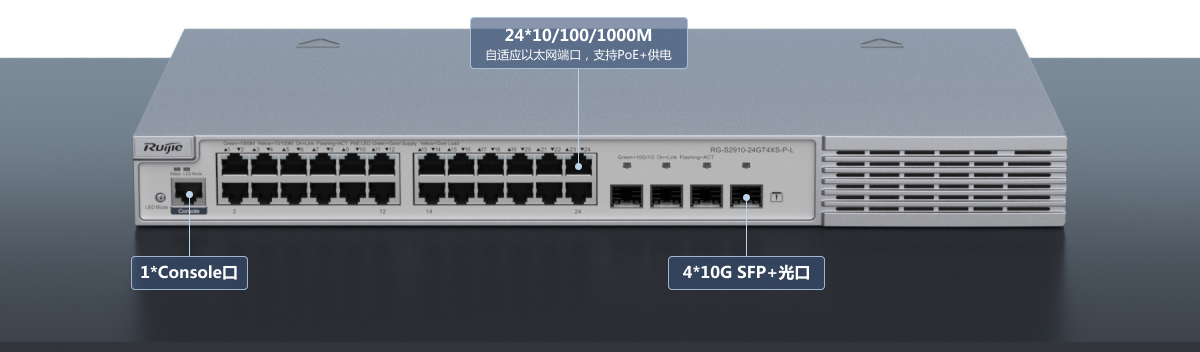 RG-S2910-L系列交換機為園區網絡接入設備提供千兆到桌面應用,同時提供大容量的千兆和萬兆上行帶寬,滿足接入用戶信息量日益增長的需要。