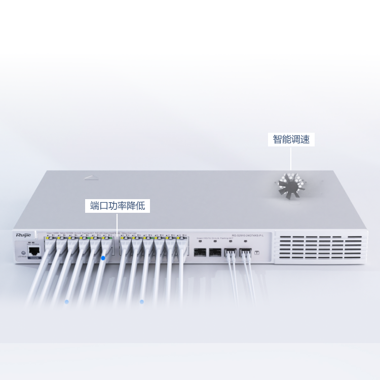 RG-S2910-L系列交換機充分響應國家綠色節能的號召,采用多種綠色節能的設計理念,針對傳統交換機在噪音及能耗方面存在的問題進行深入研究探索,充分解決了交換機部署在辦公環境噪聲大、以及接入設備大批量部署后帶來的能耗過大的問題。