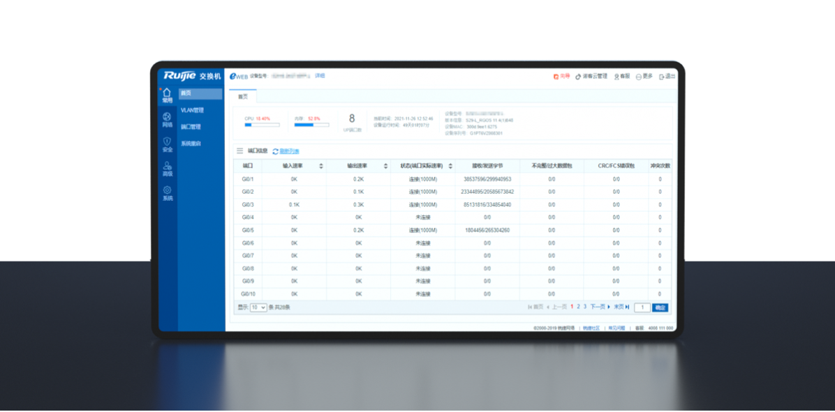RG-S2910-L系列支持云管理,可以帶給客戶極簡的運維管理和用戶體驗。