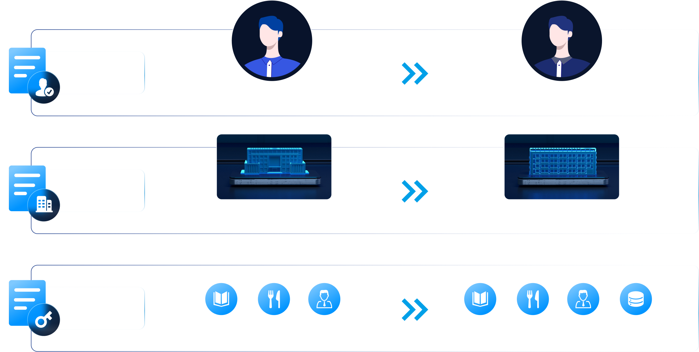 部門后,相應的業務系統權限同時開通,保障工作順利開展。確保各業務系統中組織和人員信息實時的準確性和一致性