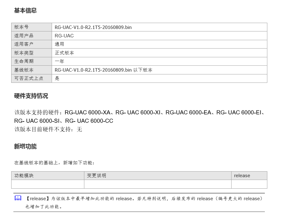 RG-UAC 6000-XA/XI/EA/EI/SI/CC系列V1.0-R2.1T5-20160809軟件版本