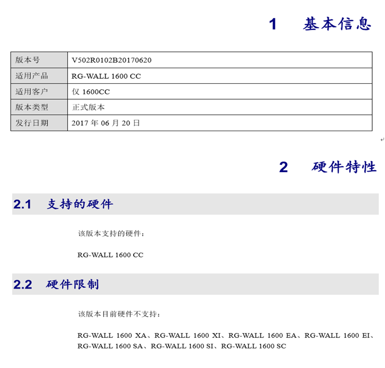 RG-WALL 1600-CC(1.0)V502R0102B20170620 軟件版本