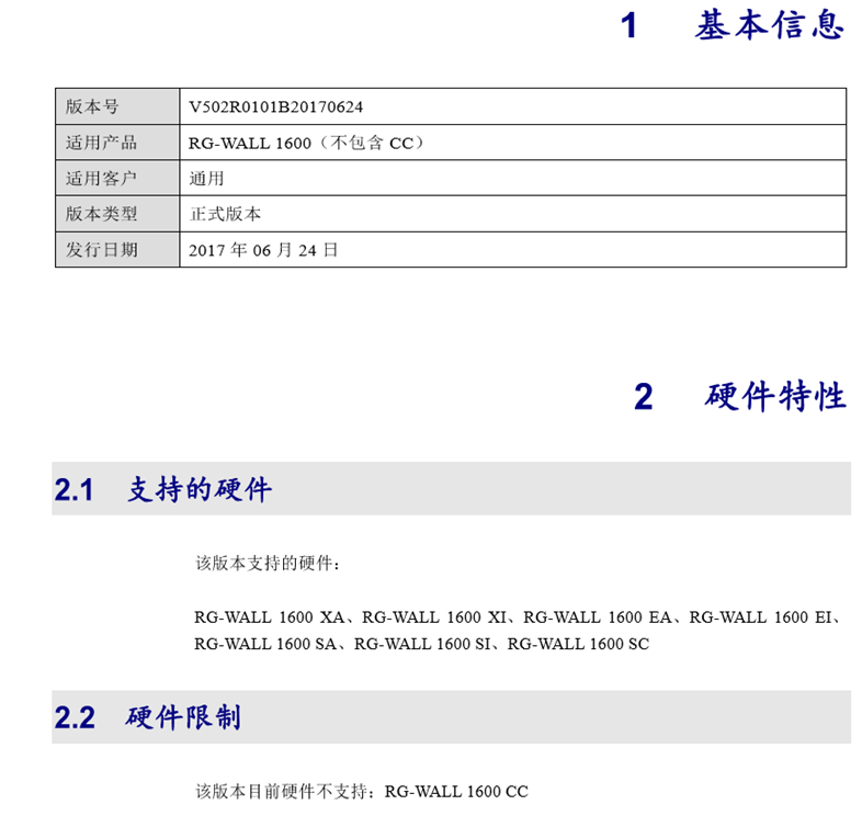 RG-WALL 1600-XA/XI/EA/EI/SA/SI/SC系列V502R0101B20170624版本