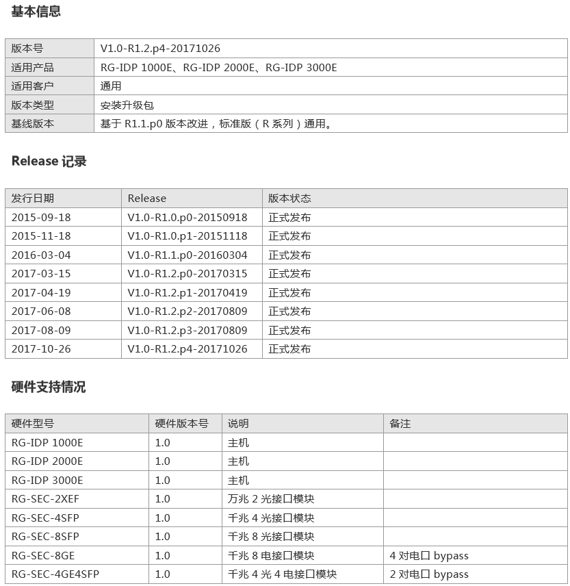 第二代RG-IDP 1000E/2000E/3000E系列入侵檢測防御系統R1.2.p4-20171026版本
