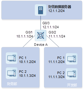 # Device A將ACL應用在連接財務數據服務器接口的出方向上。
