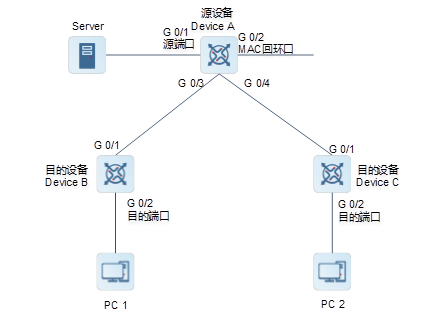 源設備是遠程鏡像角色之一,指源端口所在的設備,負責將源端口的報文復制一份到源設備的輸出端口,傳輸給中間設備或目的設備。