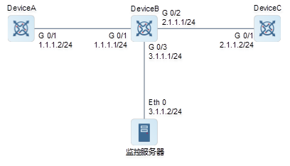 # 在DeviceB和DeviceC中通過show monitor命令查看鏡像目的設備配置結果。以DeviceB為例說明。