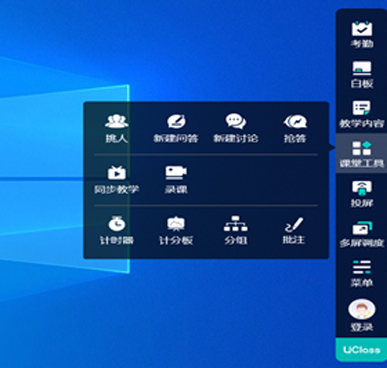學生考勤簽到、雙屏教學、挑人、新建問答、新建討論、搶答、同步教學、錄課、分組、課堂互動投屏、多屏調度等。